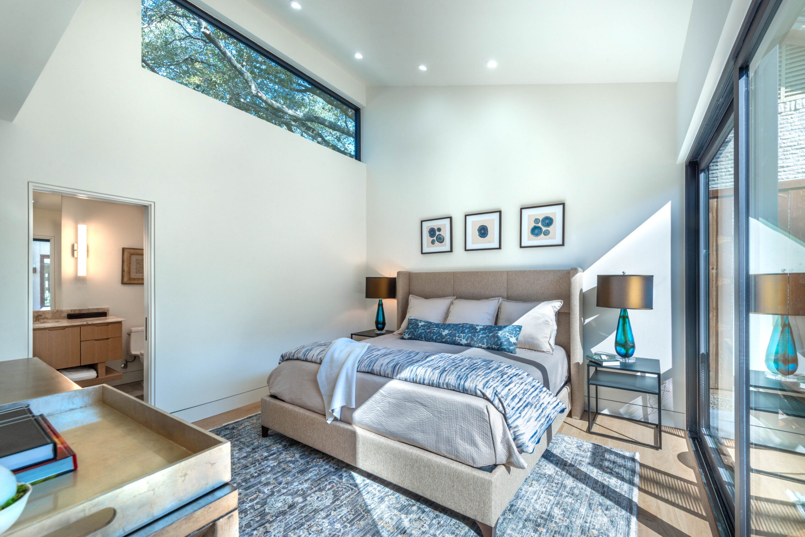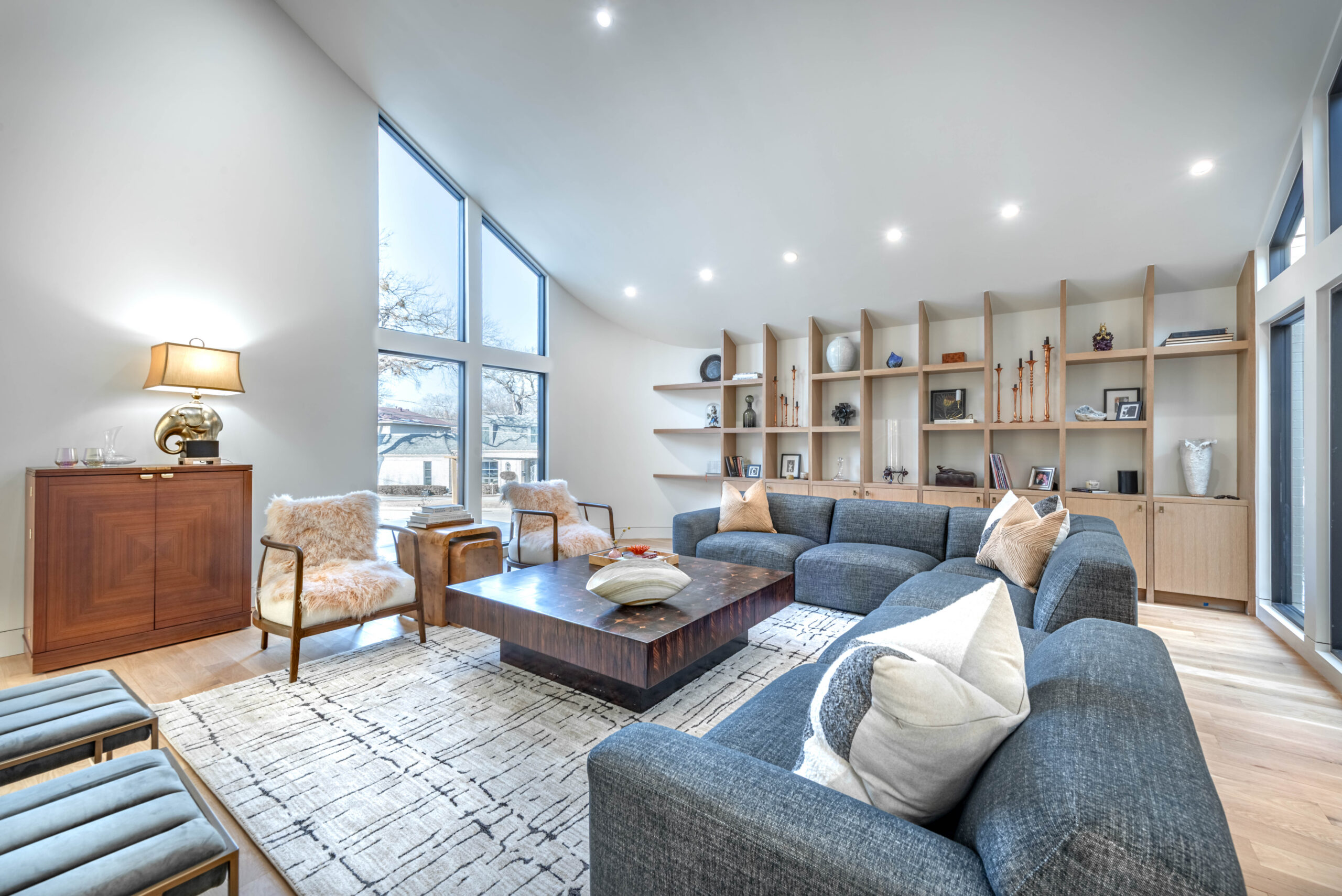 Collaboration was essential due to the property’s unique lot shape, bringing together architectural, landscape, millwork, and steel experts. Floor-to-ceiling windows frame mature trees and blur the line between indoors and out. Two living areas are anchored by a double-sided fireplace, while the triangular primary suite opens to a backyard oasis with pool and pergola. A privately positioned guest suite offers comfort, privacy, and tranquil garden views.